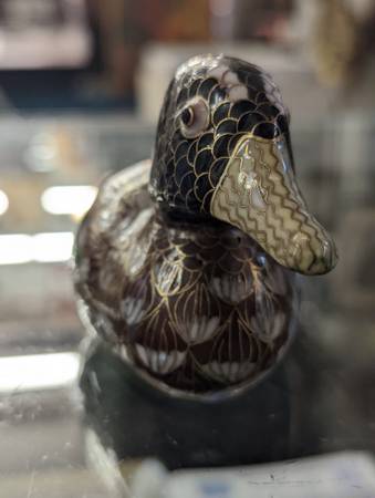 Cloisonne Brass Enamel Duck Figurine Vintage Decoration - antiques -...