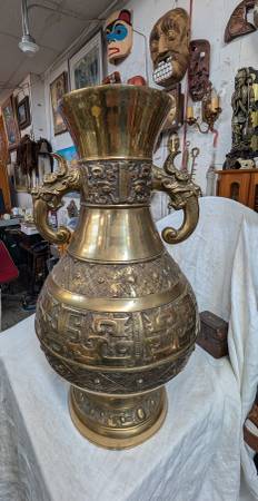 Large Antique Chinese Brass Vase Dragon Handles Circa 1880 24" x 13" x 13"