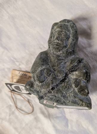 Soapstone Carving Inuit T. Usuituayuk Coral Harbour Inul 1980's $55 4.5" x 3.5" x 3"