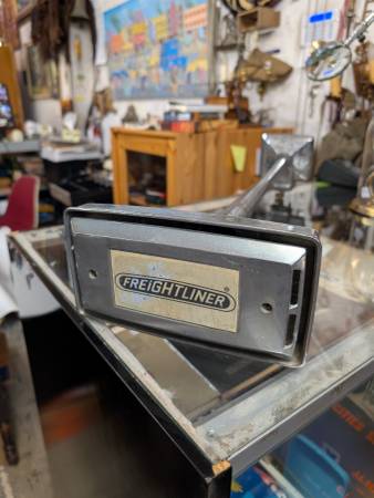 Vintage Chrome Freightliner Truck Horn Semi-Trailer Semi-Tractor Trucking A few spots of Verdigris ) rust in the plating. $100 27" x 8.5" x 4.5"