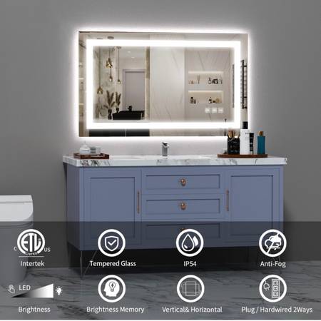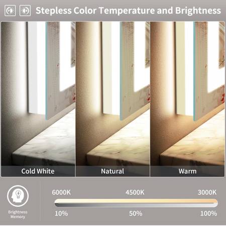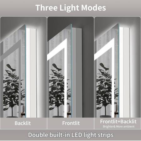 SHUAFA LED Mirror for Bathroom, 40x24 Inch Backlit + Front Lighted Bathroom Mirror with Lights, High-Density Double Light Strips, 3 Colors, Shatter-Proof, Anti-Fog and Brightness Memory