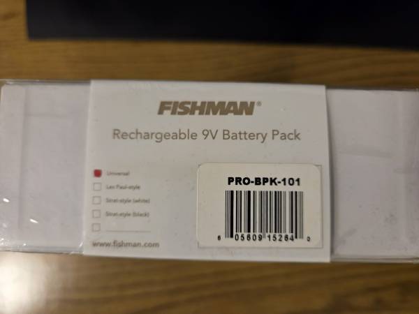 An unused universal Fishman rechargeable battery pack. Purchased from L&M at the start of 2024, but I didn't end up needing it. Can be used to power active guitar or bass pickups....
