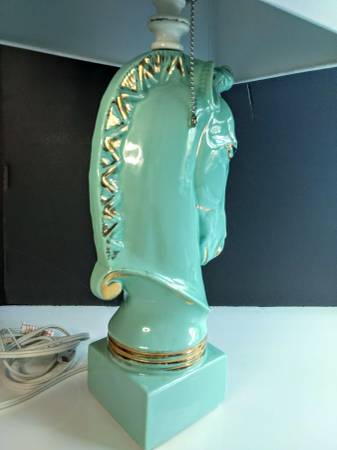 Large Deco Antique 1950s 61,5 cm with shade Table Lamp. Beautiful Blue color w gold. White Rectangular Sade like new, a little gold scuff, no cracks, great condition. Everything works. Obo....