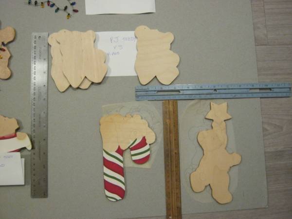 --- "Tangled Teddy" = 6 unpainted and 1 * partly painted: Comes w/Xmas mini garland