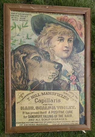 - Framed advertisement for T. Hill Mansfield's Capillaris.