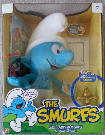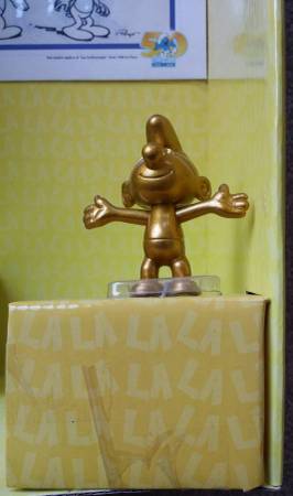 - Exclusive 50th anniversary 3 inch tall gold Smurf figure