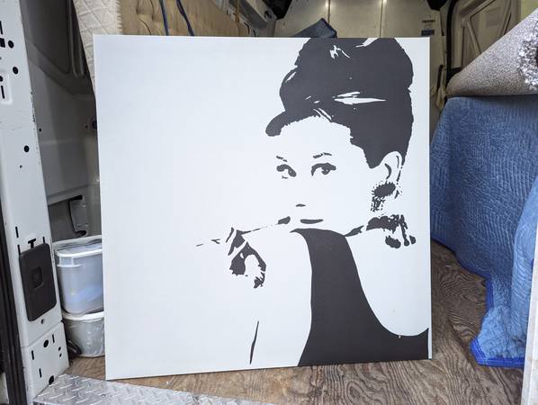 Audrey Hepburn Print on Canvas, 36" x 36". Minor blemishes but overall good condition. $25 2 available Frank Sinatra, 25" x 38". $25