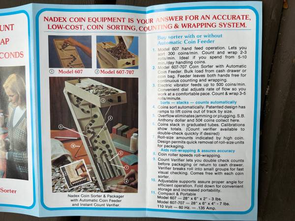 In the vending business ? Or just have a lot of coins. This is a Nadex Coin sorter. It plugs in, has very few moving parts. Works mainly with vibration and gravity. A great time saver when dealing...