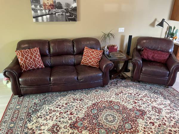 Leather couch loveseat and chair , 3 pieces Good condition No smoker and clean For inquiry please call Alex
