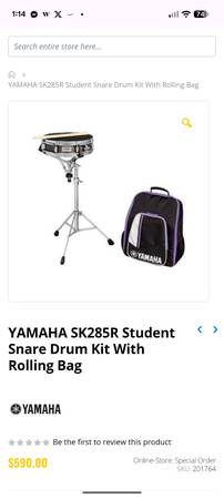 Yamaha Snare Drum Kit, includes Yamaha SK-275 Snare Drum, Stand, Drum Sticks and Yamaha Bag. At Tom Lee a new set costs $590. Barely used $250