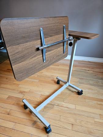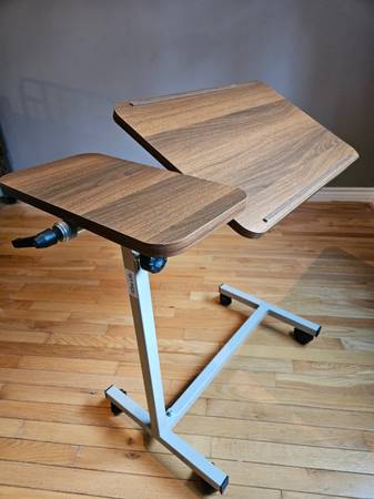 Rare used Ezee Life Tilt-top overbed table, for details please see https://nulifehealth.ca/ezee-life-tilt-top-overbed-table/