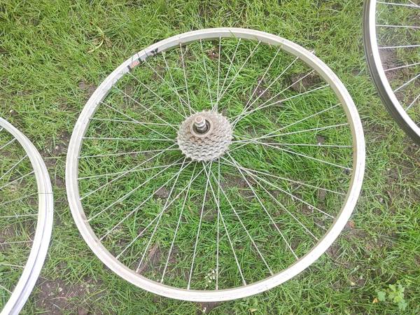 Rear wheeels for mountain bike. 26 inch. Three to chose from. 6 and 7 gears. $15 each.