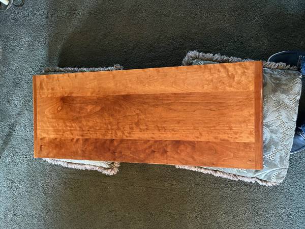 Cherry wood glossy dinning room table removed from my boat. Folds down to 46” x 18” Expands out to 46” x 31” Ready for its new home.