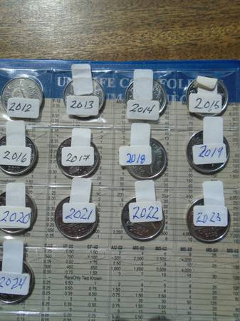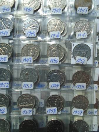 Complete Collection Canadian .05 Cents 1922 complete to 2024 2 Books Excellent condition Almost all MS (Mint State) well kept collection. 1940 -1948 repeated. $380.00 (cash)