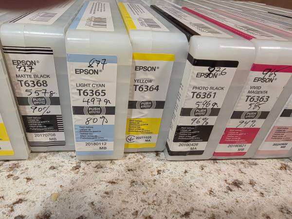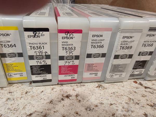 Picked these inks up in error. Mistakenly thought they would be compatible with my 2 printers...I was wrong. 🤦♂️ 70% and higher inks in each 700ml cartridge and there is one near full 350ml...