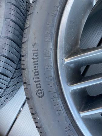For sale is a set of near new (95% tread) Continental True Contact Tour 54 all-season tires. Size is 215/45/17, and they are mounted on a set of Lexus CT200h F-Sport wheels. The bolt pattern is 5x100 and the wheels may fit other cars like a Toyota Prius.