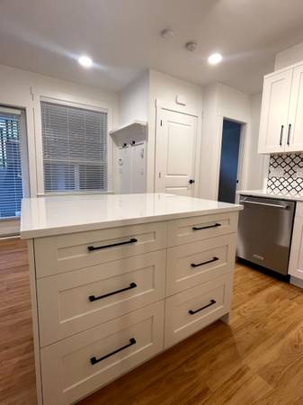 -Contemporary white cabinetry with generous storage