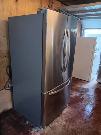 Kenmore 36 inch Stainless Steel Fridge with Bottom Sliding Freezer All Shelves and Crispers Very Clean Excellent Condition Works Perfect 36 inches Wide and 30 inches Depth 70 inches Tall