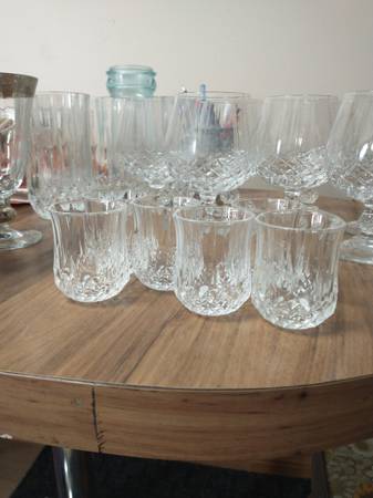 Seven Brandy glasses $10 each lead free crystal Six shot glasses $10 ea Four tumblers $10 each