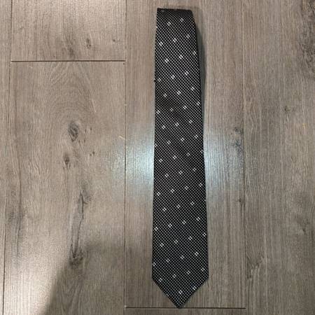 Elevate your style with this classic silk tie! Features polka dot pattern in black with white dots, pointed tip, 100% silk, made in Italy, suitable for formal or business attire (see images).