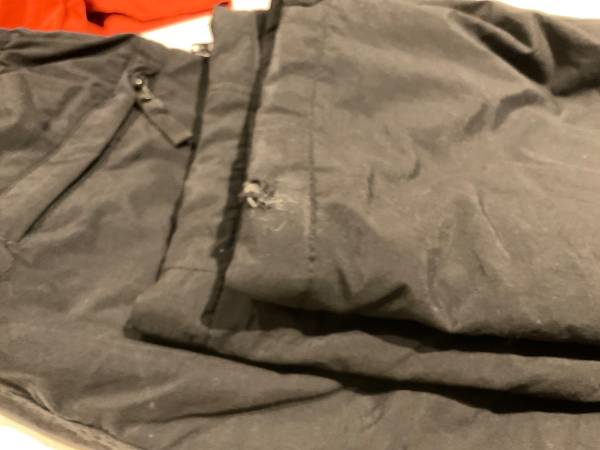 Colour is black and better than my ipad photo Pair of Black fleece lined snow/ski pants with elastic/drawstring waist and 4 pockets in excellent condition with just 1 little hole at bottom pant leg...