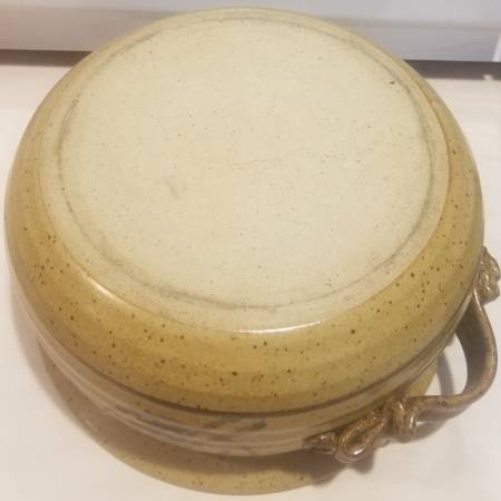 Dimensions: approx. 11" wide (handle to handle), 9.25" opening, 8" tall with lid