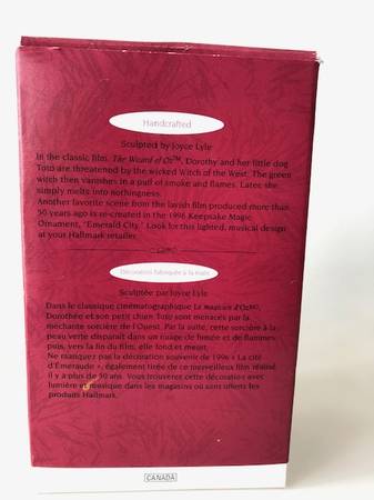 From Hallmark 1996 comes this wonderful wicked witch ornament - still in her box with the inner frame to protect her. Inspired by The Wizard of Oz movie and in mint condition.
