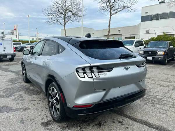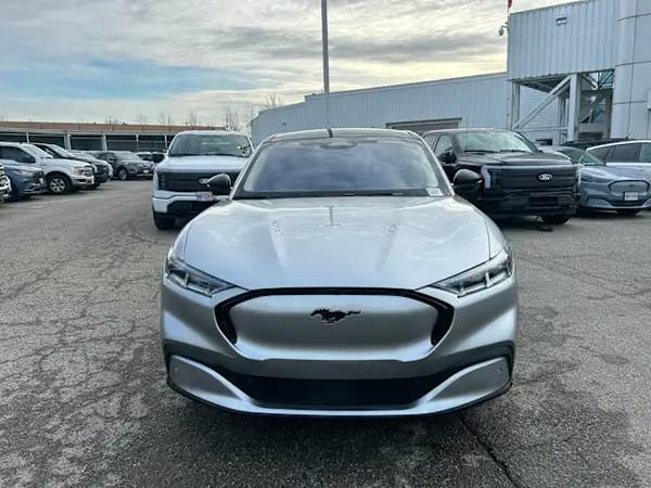 Experience electric driving like never before with this sleek pre-owned 2021 Ford Mustang Mach-E Premium AWD in stunning Iconic Silver Metallic with a black perforated ActiveX interior. Powered by an efficient 88kWh battery and single-speed transmission, this all-wheel-drive electric SUV delivers an exhilarating and smooth ride with advanced one-pedal regenerative braking.