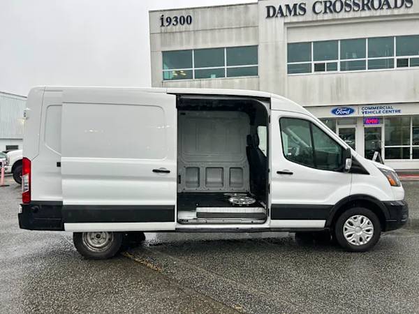 Discover efficiency and innovation with this pre-owned 2023 Ford E-Transit Cargo Van T-350 148" Med Rf. Powered by a robust electric motor and 1-speed transmission, this RWD van boasts a 9,500 lbs GVWR and offers an impressive 115 kW charging capacity with SAE CCS DC fast charge, delivering up to 34 minutes to recharge. Finished in clean Oxford White with a durable Dark Palazzo Grey vinyl interior, it's designed for both comfort and utility with vinyl front bucket seats, electronic air temperature control, and a spacious rear cargo area with 253-degree door opening.