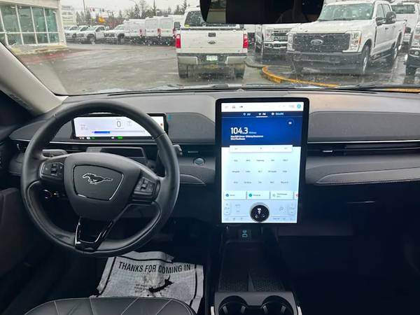 Experience the thrill of electric driving with this pre-owned 2024 Ford Mustang Mach-E Select AWD in stunning Vapor Blue Metallic exterior paired with a sleek Black interior. Powered by a .72 kWh usable LFP battery and a smooth single-speed transmission, this Mustang Mach-E delivers instant torque, all- wheel drive confidence, and advanced tech like SYNC 4 with voice recognition, heated front seats and steering wheel, and a premium 10.2" digital instrument cluster. Stay connected and comfortable with navigation, wireless charging, and dual-zone climate control. Safety is top priority with features like lane departure prevention, blind spot warning, and forward collision mitigation. Stylish 19" machined-face aluminum wheels complete the look. Drive electric. Drive exciting.