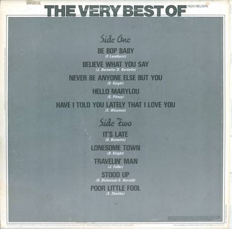 Rick Nelson – The Very Best Of Rick Nelson - VG/NM VINYL in Open Shrink!