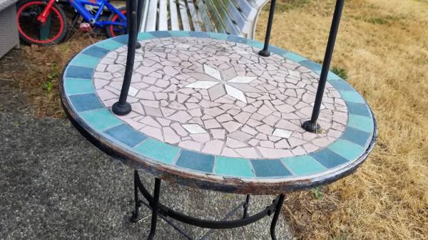 2pc Wrought Iron & Stone Inlaid Patio Set E-Transfers Accepted. Delivery is Available Locally for $39 if needed.
