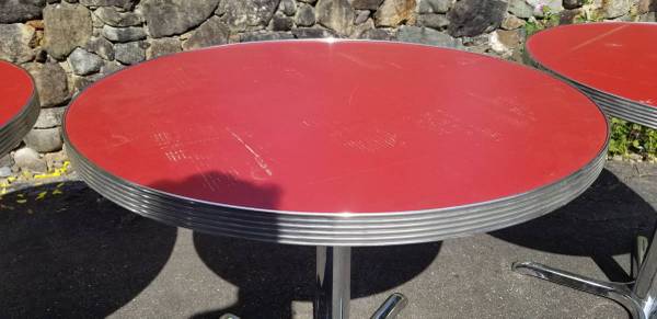REDUCED from $149 to Only $49 Today! (ONLY 1 LEFT) REDUCED 1950's Style Bistro Restaurant Tables CHEAP! Note: there were 3 but 2 have been Sold. Now only 1 available. The chrome banding on the table...