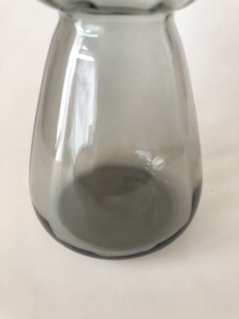 Have some fun gardening on a small scale and bring spring home early. Place the bulb on the top - water in the bottom - and watch magic happen. A fun experiment for children too. There are no chips or cracks or scratches or flee-bites. The colour is a gentle grey and there optical glass stripes which I couldn't really capture in the pictures. 6" tall - 3.75" wide.