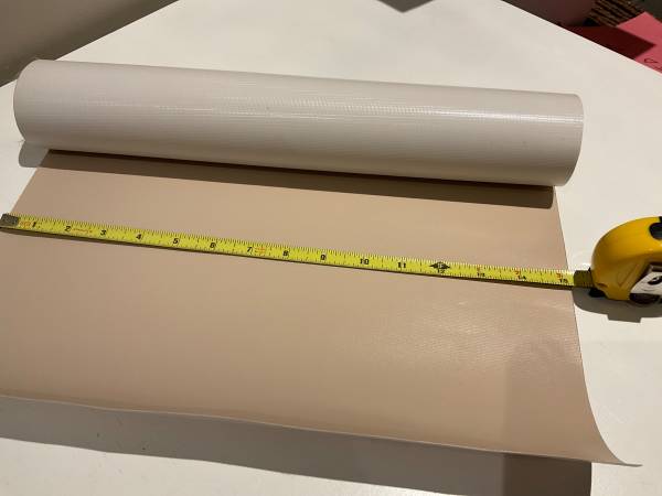 Partial roll of tan colour vinyl - faux leather Width is 15 1/4 inches and length unknown $50 or best offer for the roll Upholstery Chair covering Bench covering