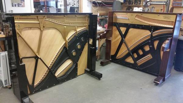 Prices rage from $25,000 and up. The value of the raw piano is not much, what we do to them, making them look and perform as they do, takes hundreds of hours and that is what ads to the value of them. Sound boards can be custom crafted, actions replaced and cabinets refinished to look as new. Utilizing the best parts and craftsmanship we can give new life to old pianos.