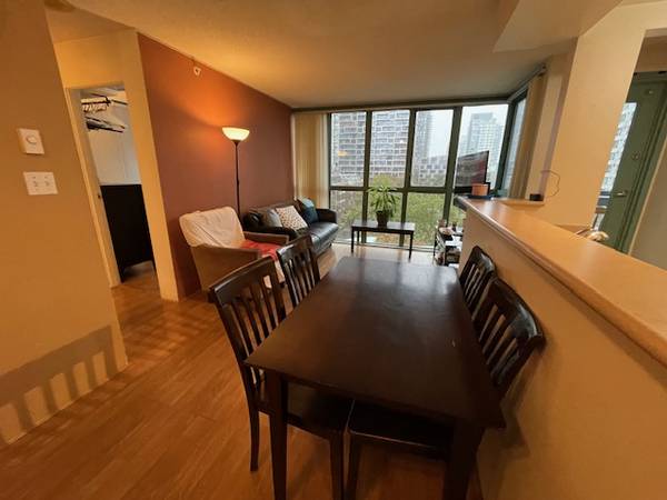 7th floor semi-furnished unit has a great layout for 2 roommates or a single bedroom and a large bright office.