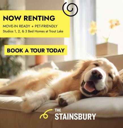 Steps to Trout Lake Park and Community Centre, with access to art, dance, fitness, yoga, and more.