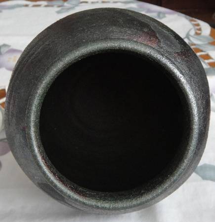 2. A skillfully made garlic jar - of course, can be used for different things. Ted Driediger is a B.C. artist, known for ceramic designs. The largest (middle) diameter is also ca. 18cm (7inch), the height ca. 13cm (5inch).