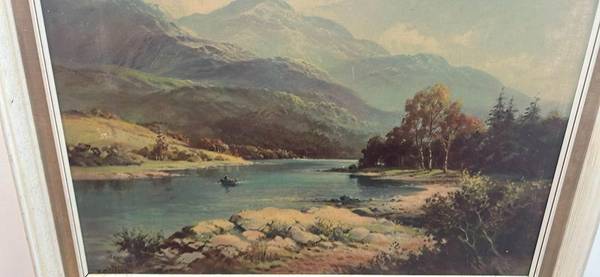 Framed Print on Cardboard of a Fisherman on a Boat Good condition 27.5” wide x 22” tall Only $20 Delivery available for extra Location - Blen Item # - 4320