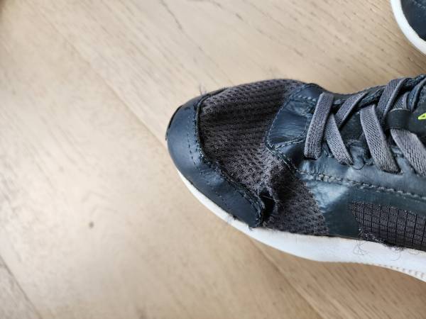 1. Size 1 black Nike shoes. These are in worn condition with a rip through one layer (but not through the second layer). They are washed and could be worn as a back-up shoe or play shoe...? Free!