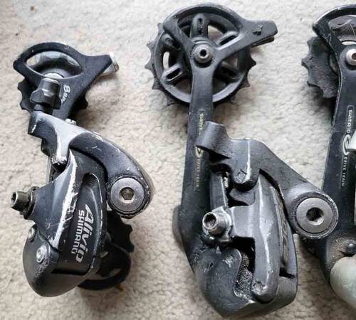 pre-owned. All Work fine. * Shimano RD-M410 (7-8 speed) * Shimano Alivio RD-M410 (Silver) 7-8 speed * Shimano RD-TY300 6-7 speed * Shimano Tourney TZ RD-TZ200 (Silver) 6-7 speed * Shimano Deore...