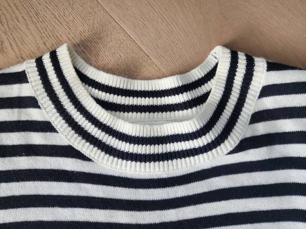 Worn only once! Old Navy women's striped sweater shift dress size XS. Black and white stripes, 3/4 length sleeves. 60% cotton, 40% polyester. Hits just above knees (shorter if you're taller). 33.5 inches from shoulder to bottom hem, 16.5 inches pit-to-pit. $20 Pick-up is in Kitsilano near Blenheim/W 10th