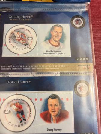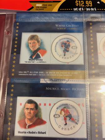 To mark the occasion of the 50th Annual NHL All Star Game in 2000, Canada Post issued special edition stamps featuring legendary NHL greats. This limited edition issue featured STAMPS and CARDS of six all-time greats. Wayne Gretzky, Gordie Howe, Maurice Richard, Doug Harvey, Bobby Orr, and Jacques Plante.