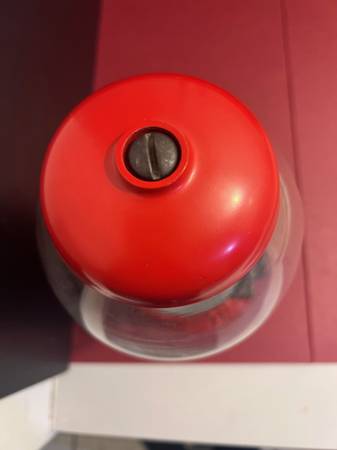 This vintage gum ball/jelly bean machine is still in good working condition and is likely 40 years old. Machine inside and outside is clean with no major flaws - there is a slight crack in the bulb part of the machine but it does not take away from the overall appearance or functionality of the machine. Machine is 12 inches in height. No manufacturing name but made in China. Asking $15 for this vintage item.