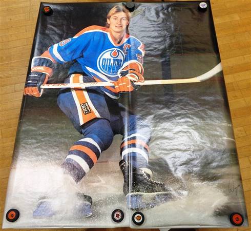 Rare life-size wallpaper of Wayne Gretzky signed in 1984. Two panels make up the piece. The main panel is pictured alone so as not to unroll the entire wallpaper needlessly. I've included an unsigned example I saw online. 50 goals in 39 games seemed like the ideal price $3950 but I am open to offers. The wallpaper was purchased at a fundraising dinner auction in Edmonton in 1984 so I am confident of it's authenticity. Happy to pay for a formal authentication if requested.