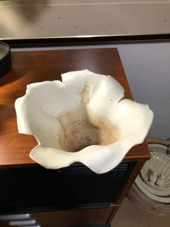 1) Flowery shape unique shape signed 2000(diameter 9.5" x 5" height) $50 2) Light Green Pottery vase signed 1997 (diameter 6" x 7.5" height) $50 3) 2 Piece Pottery Vase with Lid signed 1988...