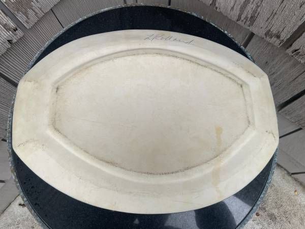 Laurie Rolland Signed Pottery Platter Dish Canadian Artist Stylized Nature Birds 15" x 11". Minimal to no wear, very high grade condition.