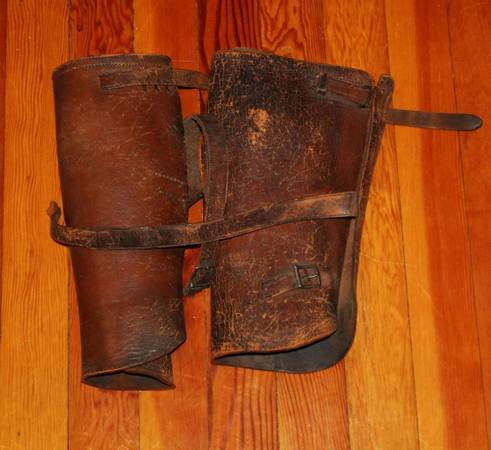 2 Pairs Antique Leather Cavalry Gaiter Leggings WWI British Military - $80 (vancouver)