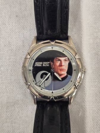 The picture of Spock profiles him in his early Star Trek series days. Certificate of authenticity, metal case and watch included.